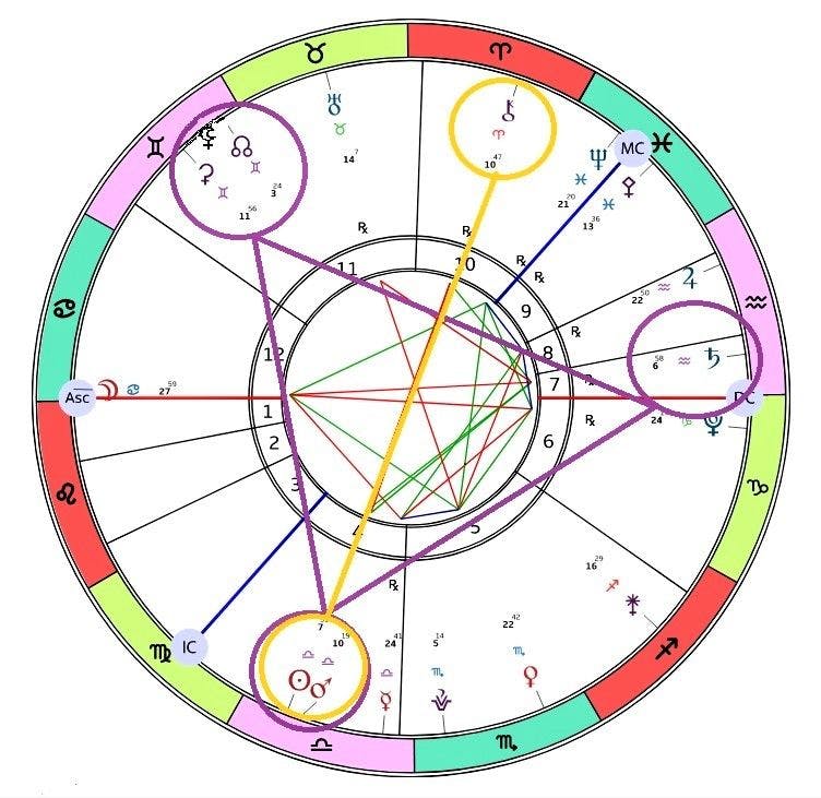 Perjantaina Aurinko on 7 ja Mars 10 astetta vaa`an merkissä. Vastapäätä oppositiossa on perääntyvä Khiron haastamassa Auringon sekä Marsin maskuliiniset energiat. Aurinko sekä Mars ovat tiukoilla myös perääntyvän Uranuksen sekä perääntyvän Pallaksen kvinkussien myötä. Ensi viikolla olevan Uudenkuun aikaan tämä kuvio on tarkimmillaan. Tästä hieman myöhemmin lisää.