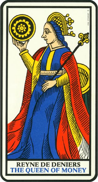 Kuningatar on täysin keskittynyt omien kykyjensä tutkimiseen ja hyödyntämiseen. Huoli oman lahjakkuuden vaihtamisesta ”valtakunnan valuuttaan” tuo mukanaan esteen, joka on jotenkin voitettava, jotta menestys meissä voi vapautua. Kuningattarella on myös valtikka vasemmassa kädessään. Se muistuttaa siitä, että luovuutemme palvelee myös muita. Ja se on oman lahjakkuutemme päämäärä ja tarkoitus. Juuri tämä vapauttaa meidät luovuutemme erillisyydestä ja huolesta. Muut ihmiset tuovat meille tarvittavaa pysyvyyttä, mutta myös esteen, joka vahvistaa yksilölliset kykymme.