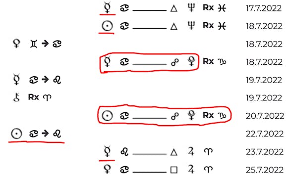 Maanantaina myös Venus siirtyy Ravun merkkiin ja käynnistää – ei ainoastaan rakkauden kuukautta – vaan rakkauden vuoden kaikille Ravuille. Ratkaisevaa on se, millä tavalla Rapu onnistuu tekemään tästä maanantaina alkavasta Venus-ajasta itselleen mahdollisimman ihanaa, rakkaudellista ja onnellista. Tuleva noin vuoden mittainen jakso seurailee tämän kuukauden aikana tapahtuvaa rakkaudellisuutta itseä kohtaan. Myös muut vesimerkit Skorpioni ja Kalat ovat kolmiomerkkeinä Venuksen positiivisten värähtelyiden alaisuudessa.