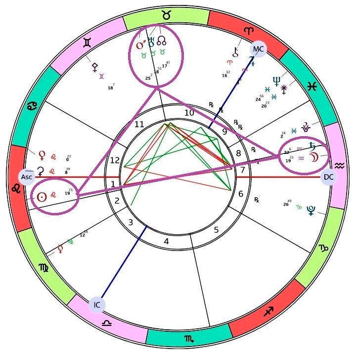 Marsin sekstiili perääntyvälle Neptunukselle sekä kolmio perääntyvälle Plutolle tulee tarpeeseen. Härän merkissä olevalla Marsilla riittää tahtotilaa, mutta Neptunuksen herkät energiat tuovat mukaan pehmeän lisänsä. Siinä missä Pluto symboloi vaistonvaraisuutta, Neptunukseen liittyy herkkyys.