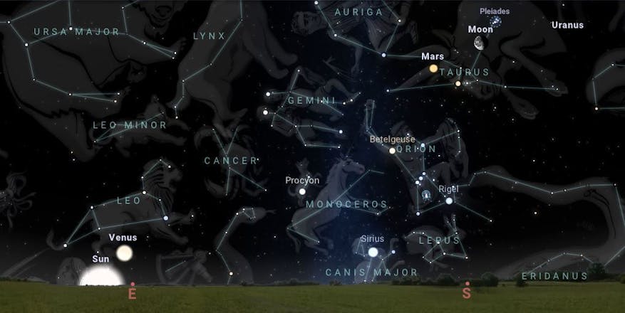 Kuva: Aamutaivas 16.9.2022. Lähde Stellarium