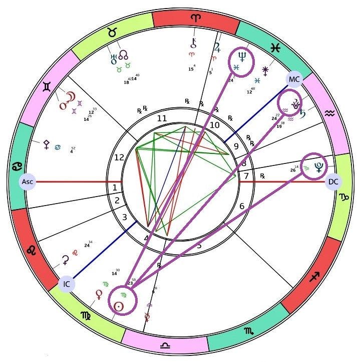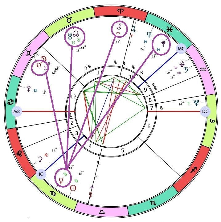 Venus on neitsyen merkissä ja tarkassa neliössä Marsiin. Maskuliinisen ja feminiinisen tasapainon välille muodostuu paineita. Meissä kaikissa on kummatkin puolet edustettuina. Neliön paine voi liittyä sisäisiin ristiriitoihin yhtä lailla, kun ihmissuhteisiinkin. Venuksen ja perääntyvän Khironin välille muodostuu alitajuinen haastekulma eli kvinkunssi. Venuksen ja perääntyvän Junon välinen oppositio voi liittyä arvoristiriitoihin, sopimuksiin sekä toiveisiin.