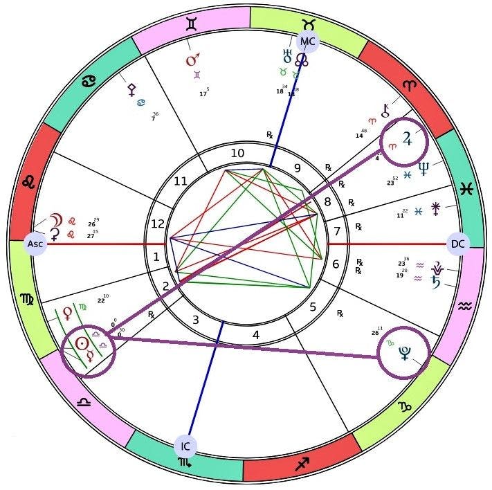 Venus on neitsyen merkissä ja oppositiossa perääntyvään Neptunukseen. Siinä missä neitsyen merkki kaipaa selkeyttä ja rauhaa, Neptunuksen oppositio voi tuntua hämmentävältä ja rauhattomalta. Venuksen ja perääntyvän Vestan välinen kvinkunssi voi aiheuttaa alitajuisia vaatimuksia ja paineita. Venuksen ja Pluton välinen kolmio tuntuu jo, vaikka ei olekaan vielä tarkimmillaan.