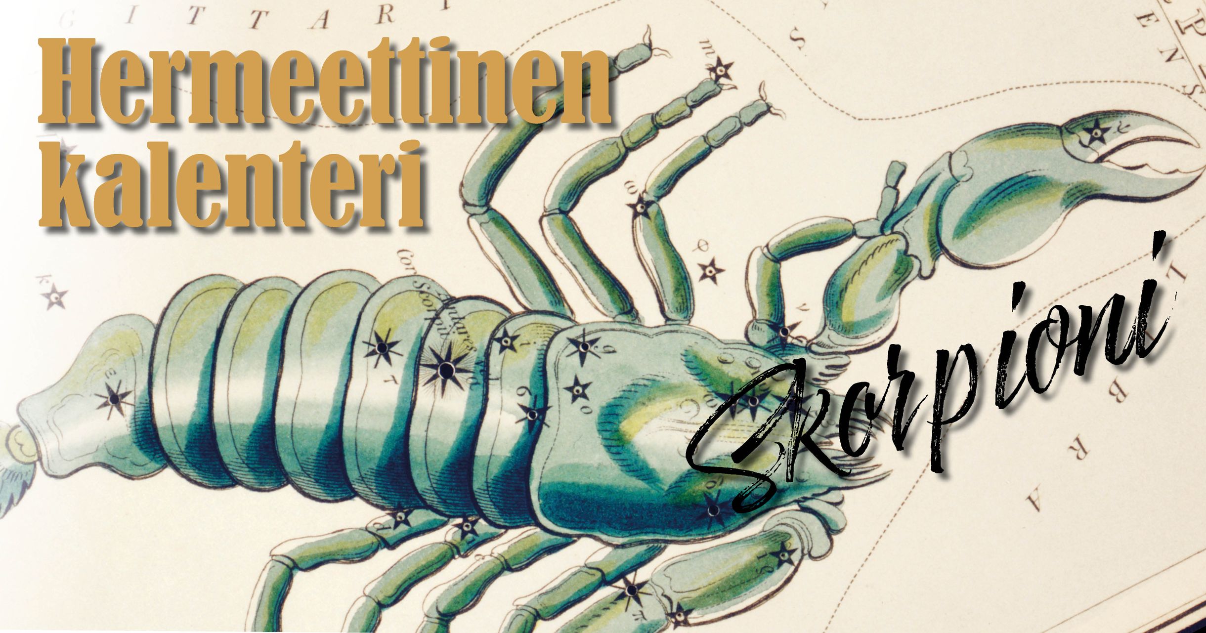 Aurinko siirtyy Skorpionin tähtikuvioon 18.11. Kun Aurinko siirtyy tälle alueelle, tullaan alkemian, siihen liittyvien transmutaatioiden ja transformaatioiden ytimeen. Me tulemme sisäisyyden mysteereihin, haavoittuvuuden, hiljaisuuden, puolustautumisen, irrottautumisen ja moraalisen voiman lähteille. Skorpioni hahmotettiin aikaisemmin Kotkaksi, jolloin neljää suurta kasvun laatua olivat kuvaamassa symbolit Härkä, Leijona, Kotka ja Ihminen/Enkeli. Niiden vastaavat meditatiiviset tunnuslauseet ovat: ”olla vaiti”, ”uskaltaa”, ”tahtoa” ja ”tietää”. Skorpioni on sisäisen kokemisen ja tämän sisäisyyden tyyneksi saattamisen ”sielun peili”. Vesielementti, joka voi valaistua henkisen initiaation voimalla.