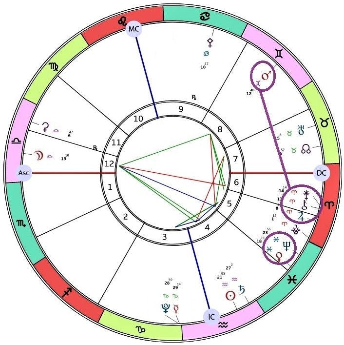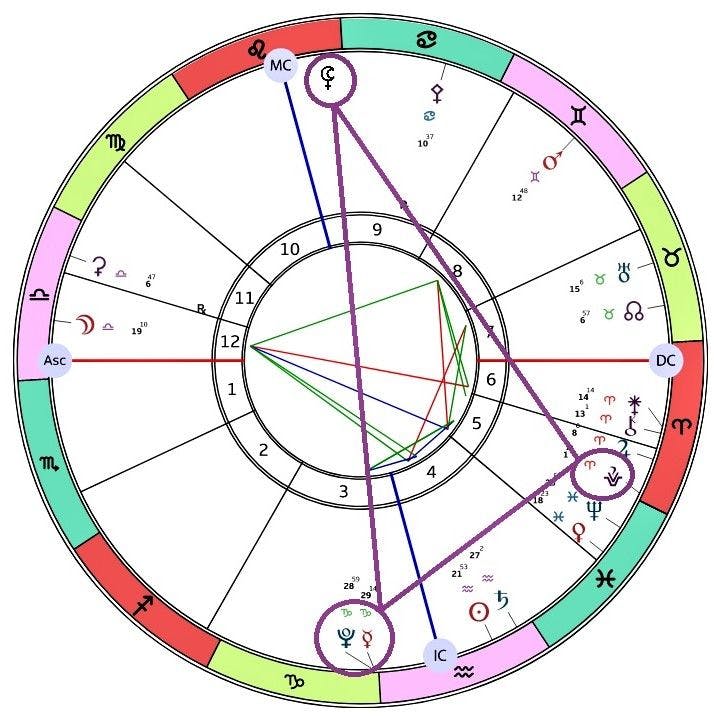 Jos ajatellaan että Pluto on luonteeltaan vaistonvarainen Feenikslintu, joka on nähnyt syvyydet ja korkeudet, Merkurius on yhdistävä sanansaattaja, joka pääsee kulkemaan eri kerrosten tai tasojen välillä, on helpompi ymmärtää näiden yhteisvaikutus. Lilith on alkuvoima. Kun se kyseenalaistaa Pluton ja Merkuriuksen konjunktion, se voi vahvistaa ja selkeyttää tai sitten aiheuttaa valtataisteluja. Vestan positiivinen kulma lisää aikaan pyhyyttä ja omistautumista. Se on olennainen tuki, jonka kautta voimme löytää sydämen yhteyden.