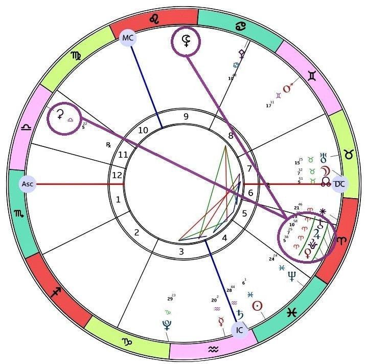 Tämän lisäksi Auringon kolmiot Pallas Athenelle ja Kuunlaskusolmulle saavat aikaan kultaisen vesikolmion. Aurinko on myös sekstiilissä eli positiivisessa kulmassa Kuunnoususolmuun. Perjantain ja lauantain välisenä yönä Kuu ohittaa Kuunnoususolmun, joten sitä on hyvä hyödyntää tietoisesti. Kuu on tällöin osana leija suurkuviota ja jotta leijan saa lentämään, olennaista on siinä oleva oppositio eli runko. Venus ja Vesta ovat oinaan alkutulen merkissä. Niiden kvinkunssi Kuunlaskusolmulle on tärkeä tarkistuspiste.