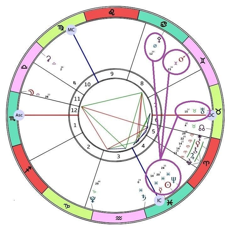 Auringon ja Neptunuksen konjunktio kalojen vesimerkissä kuvastaa hyvin ajan ajelehtivaa luonnetta. Neptunus on kalojen hallitseva planeetta, joten painotteisuus tuplaantuu. Auringon toisella puolella on Merkurius kalojen merkissä. Auringon ja Neptunuksen neliö kaksosten merkissä olevalla Marsille tuo aikaan arvaamattomuutta ja levottomuutta.