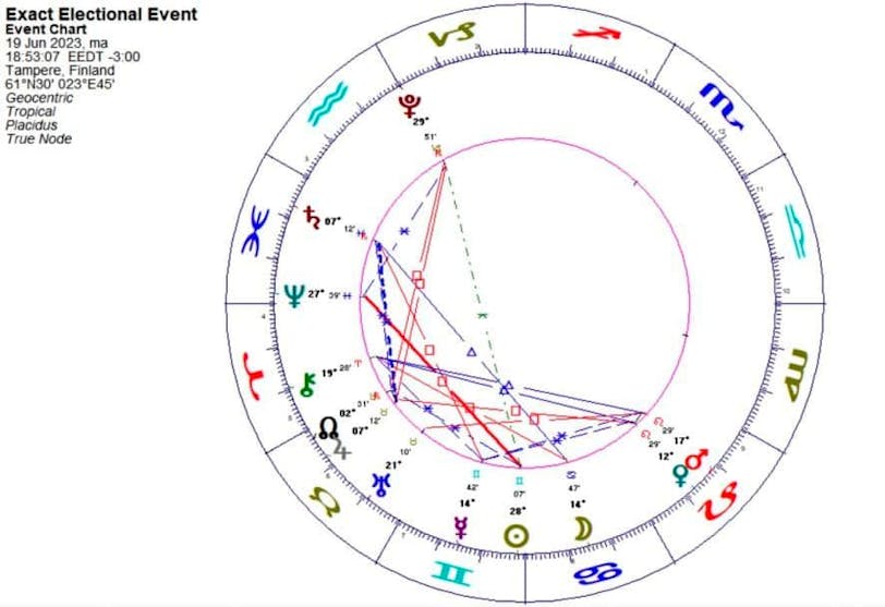 Tarkalleen sekstiilissä ne ovat keskenään 19.6.2023. Vaikutusaika alkaa kuitenkin toukokuun viimeisistä päivistä ja jatkuu heinäkuun alkupäiviin asti. Tämä sinänsä oikein mieluisa asetelma osuu mukavasti juhannukseen. Ovathan nämä sosiaalisia ympyröitä rulettavia planeettoja. Onnenplaneetta jupiter ja konkretian saturnus. Minne ikinä nämä omalla syntymäkartalla osuvatkaan suotuisassa kulmassa niin jotain mukavaa voi saada pysyvämpää muotoa.