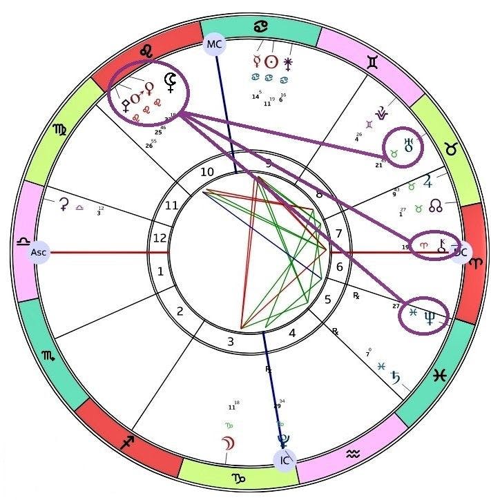 Lilith, Venus, Mars ja Pallas Athene ovat konjunktiossa leijonan merkissä. Venus on varjoalueella ennen 23.7. alkavaa perääntyvää vaihetta. Venuksen energia on tämän vuoksi hautuvaa ja intensiivistä. Uranuksen neliöt kaikille edellä mainituille tekijöille tuo tullessaan yllättävän tuulahduksen. Uranus on arvaamaton villihevonen. Parhaimmillaan se avaa uusia mahdollisuuksia ja oivalluksia. Kaikessa hallitsemattomuudessaan se voi jopa toimia selkeyttävänä tekijänä. Uranuksen haasteisiin liittyy ylivirittyneisyys, levottomuus ja liiallinen kapinallisuus.