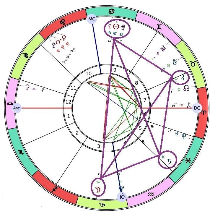 Auringon ja Merkuriuksen valovoimainen ja herkkä konjunktio auttaa muodostamaan syvemmän yhteyden alitajuntaan. Tämä on myös tunneälyn kannalta hyvä kuvio. Junon majesteetillinen lisä tukee ihmissuhteissa tapahtuvaa kommunikointia sekä oivalluksia. Koska Aurinko valaisee sen mihin osuu, se voi olla joissain ihmissuhteissa myös haasteellinen tekijä. Vaikka osaisimme olla omassa ilmaisussa ja mielipiteissä selkeitä, emme välttämättä osaa kuunnella toisen ihmisen näkemyksiä samoista asioista. Pahimmillaan on kaksi ihmistä, jotka ovat kummatkin omasta mielestään oikeassa, toisen ollessa väärässä.