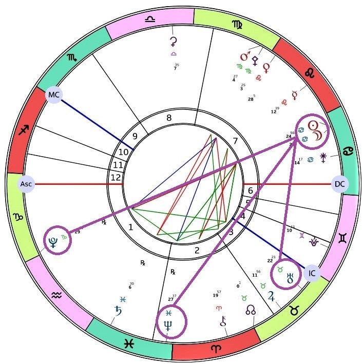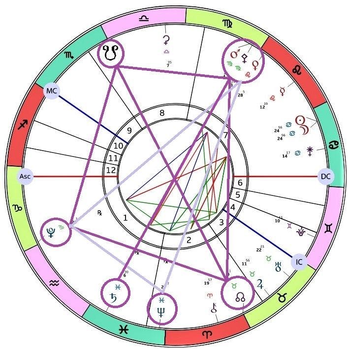 Mars ja Pallas Athene ovat siirtyneet neitsyen merkkiin. Venus on leijonan merkissä 9.10. saakka 23.7. alkavan perääntyvän vaiheen vuoksi. Venuksen ja Pluton välinen kvinkunssi on kuin terävä kivi kengässä. Sitä ei voi olla tuntematta, koska sen tuntee jokaisella askeleella. Venuksen ja Neptunuksen välinen kvinkunssi voi olla vaikeampi hahmottaa. Kiven löytäminen ei ole niin yksinkertaista, kun voisi kuvitella. Kvinkunssi on luonteeltaan hyvin usein alitajuinen ja vaativa. Sen kohtaamalla voimme vapautua liiallisista vaatimuksista tai odotuksista. Edellä mainituista tekijöistä muodostuu jod eli jumalan sormi niminen suurkuvio.