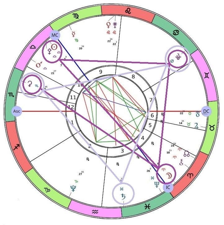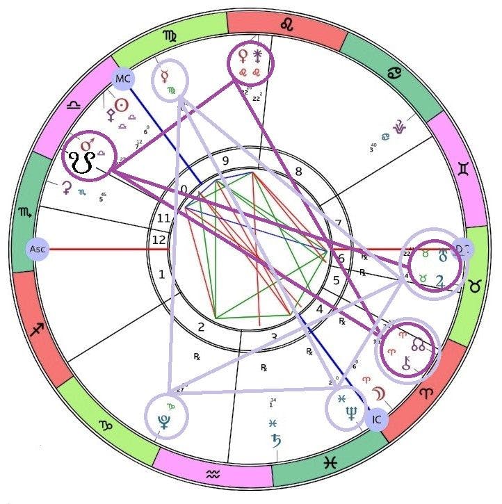 Venus ja Juno ovat konjunktiossa leijonan merkissä. Seitsemän asteen päässä on Lilith, joka tuo oman feminiinisen alkuvoimansa mukanaan. Venuksen ja Junon sekstiili Kuunlaskusolmulle sekä Marsille nostaa ihmissuhteiden ja arvomaailman lisäksi jokaisen oman maskuliinisen ja feminiinisen tasapainon tarkastelun kohteeksi. Vaikka Venus ja Juno ovat kolmiossa Kuunnoususolmuun sekä Khironiin, Mars haastaa ne opposition myötä. Pluton neliöt Kuunsolmuille sekä Marsille saattaa saada puolustusmekanismit aktiivisiksi. Mars on soturi ja taistelija, joka ei jää tuleen makaamaan. Kun ajassa on ylivirittynyt tunnelma, sen voima voi kääntyä itseään vastaan. Kun vielä Täysikuu on Marsin hallitsemassa oinaan merkissä, tuli voi roihahtaa hallitsemattomaksi. Arvaamattomuutta lisää Venuksen ja Junon neliöt Uranukselle sekä hieman etäämmällä olevalle Jupiterille. Marsin ja Uranuksen välinen kvinkunssi sähköistää Marsia entisestään.