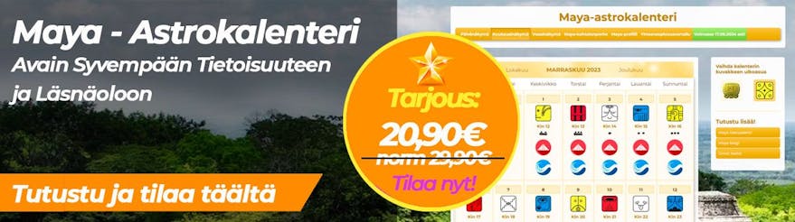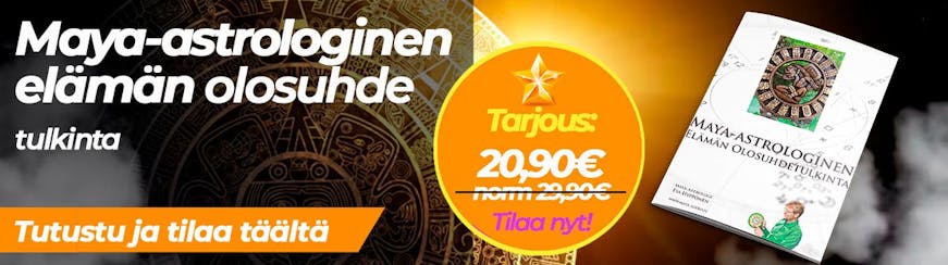 Maya-astrologinen tulkinta elämän olosuhteista tarjoaa moniulotteisen, syvällisen näkemyksen itseesi, elämäsi tapahtumiin ja sisäiseen maailmaasi. Lue lisää