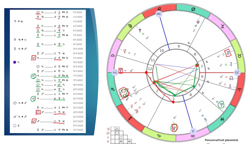 Marraskuun yleisenergia on joka tapauksessa super- tehokasta kaikille elämääsi uudistaville ja parantaville ratkaisuille karttasi kuvioista tai kartallesi osuvista planeettaohituksista riippumatta. Nyt on aika uskaltaa tarttua ronskilla otteella kaikkiin sellaisiin elämäsi tilanteisiin, jotka ovat Sinun itsesi päätettävissä. Joku valtavan merkityksellinen käänne on jokaisen ihmisen omissa käsissä.