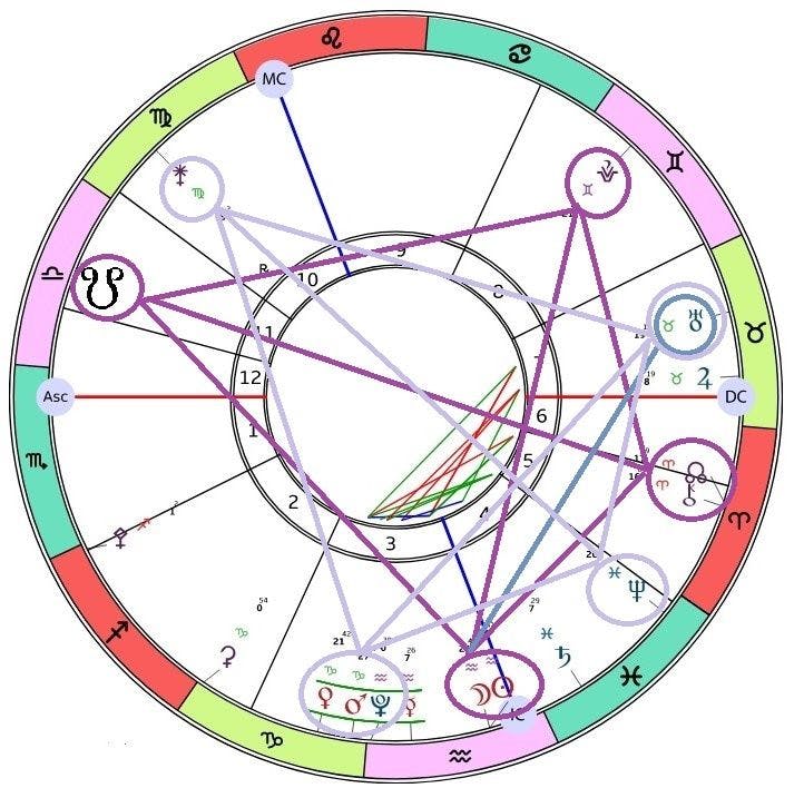 Uudenkuun kartalla Auringon ja Kuun kolmiot Vestaan sekä Kuunlaskusolmulle muodostaa ilmamerkkien Suurkolmion. Kun mukaan otetaan Kuunnoususolmu sekä Khiron, siitä täydentyy Leija kuvio. Vestan palava liekki saa taivaan kuninkaalliset parrasvaloihin. Kuunlaskusolmu saa myös osuutensa valosta. Kannattaa katsoa tarkkaan millaisen työkalupakin se valaisee. Voit miettiä omia vahvuuksia ja toimintamalleja, joiden avulla olet selviytynyt vaikeista tilanteista. Mieti ovatko ne edelleen käytettävissä, vai tulisiko niitä muuntaa jollain tavoin paremmiksi? Meillä kaikilla on enemmän potentiaalia, kun uskommekaan ja usein se tulee yllättävissä tilanteissa esiin. Mitä tietoisempia olemme omista vahvuuksista ja heikkouksista, sitä paremmin voimme tunnistaa niiden välistä tasapainoa.