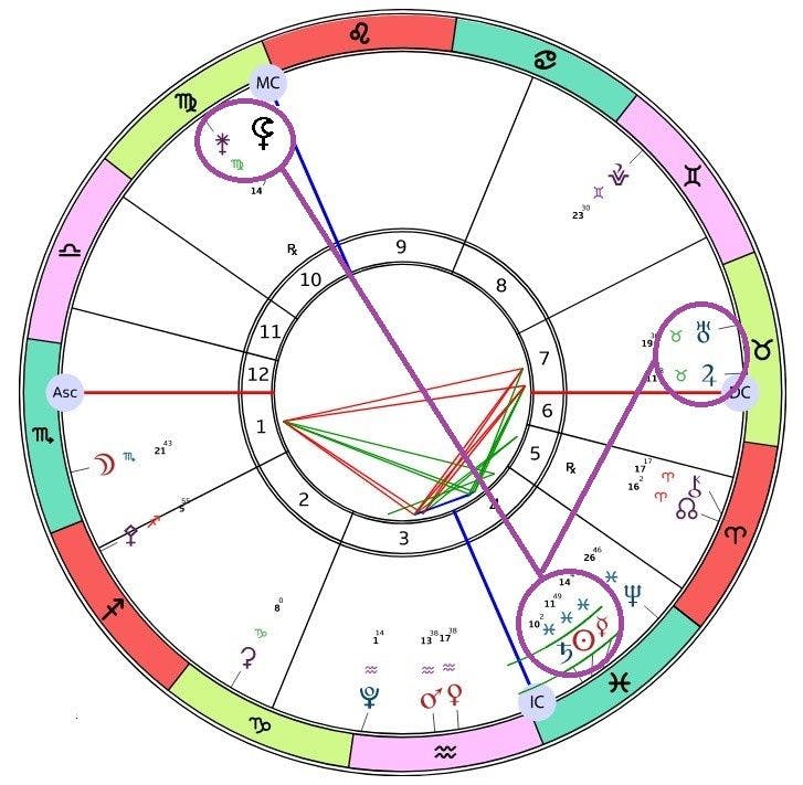 Junon ja Lilithin kvinkunssi Kuunnoususolmulle sekä Khironille saattaa tuntua ärsykkeeltä, josta on vaikea saada kiinni. Näemme mitä kohden kasvaa, mutta tiellä on vielä pirstaleisia teräviä kiviä. Soturin viisaus piilee sen sisäisissä voimissa. Tie näihin voimiin löytyy hiljaisuudesta. Sinussa on enemmän tietoa ja viisautta, kun voit aina ymmärtääkään. Kun mukaan otetaan Venuksen ja Marsin kvinkunssit Junolle ja Lilithille täydentyy Jod niminen suurkuvio.