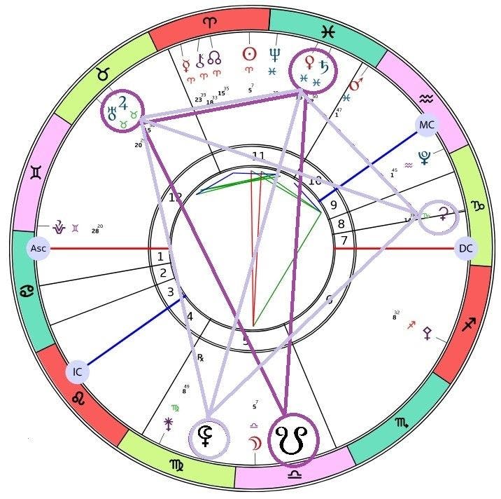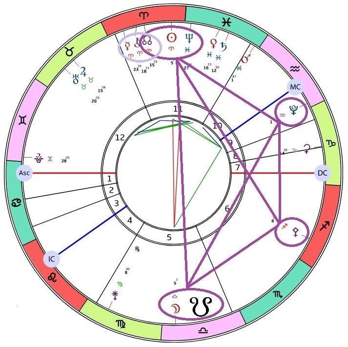 Täydenkuun kartalla Aurinko on kahdeksan asteen etäisyydellä Neptunuksesta, joka on merkkirajan toisella puolella. Auringon toisella puolella on kymmenen asteen etäisyydellä Kuunnoususolmu. Kun mukaan otetaan Pluton sekä Pallas Athenen tuki aspektit Täydenkuun kartalle muodostuu Kehto suurkuvio. Siinä missä Pallas tuo pimennykseen viisautta ja objektiivisuutta, Pluton kautta saamme voimaa ja kykyä katsoa asioita pintaa syvemmältä. Pimennykset voivat tuntua raskailta ja niihin voi liittyä vahvoja tunnepuolen läpikäymisiä. Parhaimmillaan voimme löytää syvän sisäisen yhteyden ja tasapainon. Varjotyöskentelyn kannalta pimennykset ovat tärkeitä aikoja. Kun kohtaamme sisäisiä varjoja, voimme löytää valon ja sitä kautta vapautua mahdollisista pitkään jatkuneista kierteistä. Tämä on meditaation ja hiljentymisen kulta-aikaa.