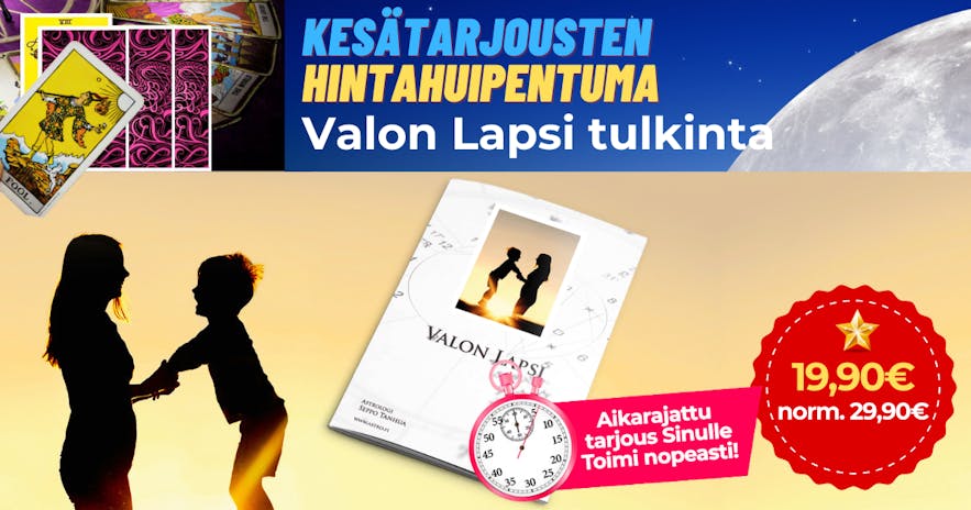 Paljon astrologisia tulkintoja, verkkokursseja sekä muita tuotteita huippuedullisesti rajoitetun ajan (tulkinnat alkaen 11,5€). Useissa tuotteissa mukana lisälahja! Siirry tutkimaan hintahuipentuman tarjouksia tästä