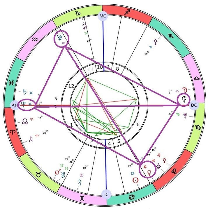Venus on juuri siirtynyt leijonan merkkiin. Venuksen ja perääntyvän Neptunuksen välinen kolmio on herkkä ja kaunosieluinen aspekti, jossa voimme kokea syvää yhteyttä maailmankaikkeuden energioihin yhtä lailla, kun itseemme tai toiseen ihmiseen. Neptunus on tunnettu henkisen, intuitiivisen ja mystisen energian planeettana, ja se liittyy usein uniin, mielikuvitukseen, illuusioihin ja henkisiin kokemuksiin. Neptunus hallitsee unia, näkyjä ja intuitiivista tietoa. Neptunus edustaa rajoittamatonta ja rajatonta tilaa. Se liittyy meren syvyyksiin, jotka symboloivat alitajuntaa ja sen piilotettuja kerroksia. Neptunus ylittää fyysisen maailman rajat ja johdattaa henkisiin kokemuksiin. Neptunuksen energiaan kuuluu empatia ja kyky tuntea toisten tunteita. Toki välillä on muistettava pitää omat rajat, ettei kadota itseään muiden energioihin.