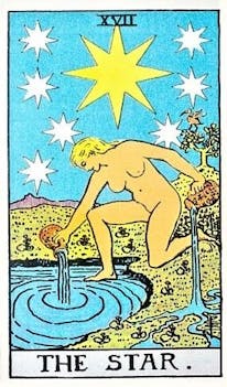Tähti symboloi toivoa ja luottamusta tulevaisuuteen. Se viittaa siihen, että olet käymässä läpi aikaa, jolloin asiat alkavat selkiytyä ja voit nähdä valoa tunnelin päässä. Tämä kortti viittaa myös fyysiseen, emotionaaliseen tai henkiseen parantumiseen. Se merkitsee aikaa, jolloin vanhat haavat alkavat parantua, ja voit kokea henkisen tai fyysisen uudistumisen. Tähti liittyy usein henkiseen kasvuun ja sisäisen rauhan löytämiseen. Se symboloi aikaa, jolloin tunnet olevasi yhteydessä omaan sisäiseen itseesi ja korkeampaan tietoisuuteen. Tämä voi olla aika meditaatiolle, itsereflektiolle ja henkiselle kehitykselle. Tähti voi myös edustaa inspiraation aikaa. Se voi merkitä, että tunnet olosi erityisen luovaksi tai että olet valmis aloittamaan uusia projekteja ja toteuttamaan unelmiasi. Tähti kehottaa sinua olemaan realistinen toiveidesi ja unelmiesi suhteen. Vaikka optimistisuus on tärkeää, on myös tärkeää pysyä maanläheisenä ja tehdä konkreettisia suunnitelmia tavoitteidesi saavuttamiseksi.