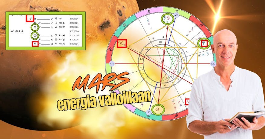 Mars on leijonan merkin alussa ja oppositiossa perääntyvään Plutoon. Kun kaksi vahvaa voimaa ottavat toisistaan mittaa, on erityisen tärkeä katsoa, ettei uuvuta itseään aivan loppuun. Voimavarat voivat olla koetuksella ja saatamme silti pakonomaisesti yrittää toimia liian suurella liekillä. Aika ohjaa meidät sisäisen transformaation äärelle ja parhaimmillaan voimme löytää uudenlaisen rytmin toimia sekä saada asioita aikaiseksi. Marsin, Merkuriuksen ja Kuunnoususolmun välille muodostuu tulimerkkien Suurkolmio, jolloin saamme entistä paremmin kiinni niistä asioista, jotka tukevat tulevaisuuttamme ja kasvusuuntaamme. Marsin ja Neptunuksen välinen kolmio auttaa pääsemään aallonharjalle, kun vain vapautamme energiamme ja osaamme antautua veden armoille. Marsin ja Junon neliö voi myös inspiroida tarkastelemaan omia tarpeita ja rajojen asettamista suhteissa. Tämä on aikaa, jolloin itsenäisyyden ja sitoutumisen välinen tasapaino nousee tärkeäksi, ja luottamus sekä avoin kommunikointi auttavat lieventämään mahdollisia jännitteitä.