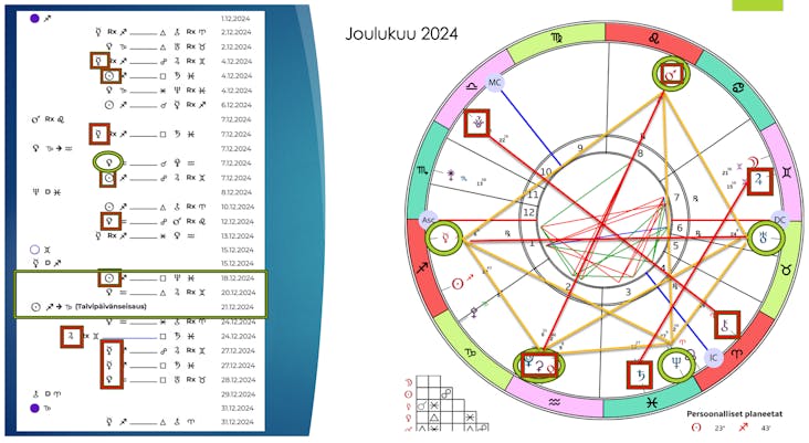 Liity mukaan ja löydä vuoden merkittävimmät hetket! Astrokalenteri on ainutlaatuinen vuosiopas, koska se tarjoaa astrologiset henkilökohtaisesti laaditut päivittäiset ja kuukausittaiset tulkinnat, jotka perustuvat juuri sinun astrologiseen omaan karttaasi toisin kuin yleiset aurinkomerkkiin perustuvat yleiset vuosioppaat. Se auttaa sinua ajoittamaan ratkaisevat hetket viisaasti. Kalenterin avulla tiedät, milloin on otollinen aika edistää ihmissuhteita, panostaa uraan tai löytää omaa hyvinvointiasi tukevat hetket. Näin pystyt hyödyntämään vuoden jokaisen päivän energiat täysillä – tekemään elämästäsi tarkoituksellisempaa ja suunnitelmallisempaa. Lisäksi se sisältää erillisenä pdf:nä "Vuosi Elämääsi" -tulkinnan (arvo 32,90 €). Jotta voit tehdä tilauksesi turvallisin mielin, annan tulkinnalle täyden tyytyväisyystakuun. Ellet ole kuukauden kuluessa kanssani samaa mieltä hankintasi kannattavuudesta saat maksamasi summan kokonaisuudessaan takaisin.