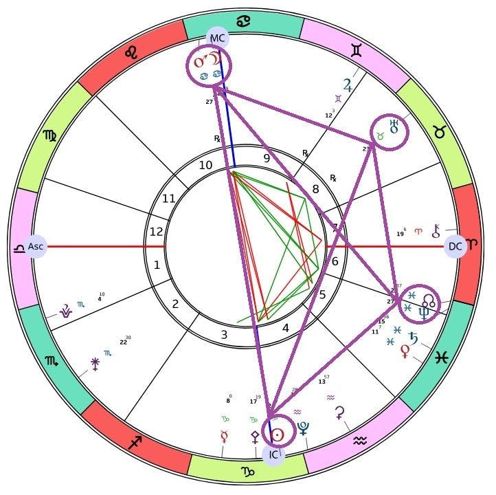 Venus on kalojen merkissä ja konjunktiossa Saturnukseen sekä neliössä perääntyvään Jupiteriin. Venus Kaloissa ilmentää syvää empatiaa, herkkyyttä ja kykyä rakastaa pyyteettömästi. Se tuo mukanaan luovuutta, romanttisuutta ja taipumusta haaveiluun, mutta myös taipumusta idealisoida muita, mikä voi johtaa pettymyksiin. Venuksen ja Saturnuksen konjunktio tuo syvyyttä ja vakautta tunteisiin, mutta myös tietynlaista varautuneisuutta. Saturnus voi rajoittaa Venuksen luonnollista ilmauksellisuutta ja tehdä ihmissuhteista vakavampia ja velvoittavampia. Neliö Jupiteriin tuo jännitteitä ja ristiriitoja arvojen, odotusten ja halujen välillä. Saatat asettaa ihmissuhteille tai rakkaudelle liian korkeita odotuksia, jotka eivät ole realistisia. Tämä kokonaisuus korostaa herkkyyden, vastuun ja kasvun välistä tasapainoa. Venuksen ja Saturnuksen konjunktio tekee rakkaudesta syvällistä ja sitoutunutta, mutta Jupiterin neliö haastaa sinut pohtimaan, ovatko arvosi ja odotuksesi realistisia. Kaloissa Venus saattaa tuoda mielikuvituksellisia ja jopa yliluonnollisia ulottuvuuksia ihmissuhteisiin, mutta Saturnuksen ja Jupiterin vaikutus muistuttaa sinua pysymään maadoittuneena ja tietoisena mahdollisista haasteista.