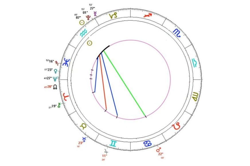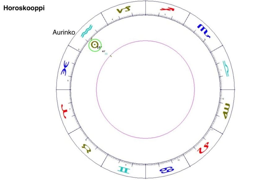 Horoskooppikartalla aurinko on tässä tapauksessa vesimiehen merkissä. Muita osatekijöitä ei ole.