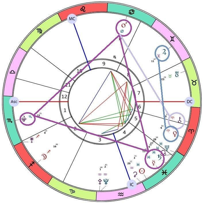 Kun Merkuriuksen ja Saturnuksen konjunktio on kolmiossa Vestaan ja Marsiin, syntyy yhdistelmä, jossa ajattelu, kurinalaisuus, toiminta ja omistautuminen kohtaavat harmonisella tavalla. Mars kolmiossa tuo päättäväisyyttä ja käytännön toimintaa ajatusten tueksi. Päätökset eivät jää vain teorian tasolle, vaan niitä seuraa määrätietoinen toiminta. Tämä on loistava aspekti projektien käynnistämiseen ja pitkäjänteiseen työskentelyyn. Vesta edustaa omistautumista ja fokusta, joten kolmio tuo vahvan keskittymisenergian. Tämä voi liittyä henkiseen tai älylliseen tavoitteeseen, johon sitoudut syvällisesti. Vestan vaikutus voi tehdä tästä jaksosta merkityksellisen, erityisesti jos työstät jotain suurempaa päämäärää.
