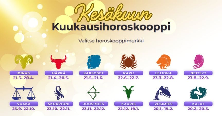 Onko sinun merkilläsi luvassa läpimurto vai läksyt? Tämä ei ole kuukausi jäädä odottamaan. Jokaiselle horoskooppimerkille on oma haaste ja mahdollisuus.