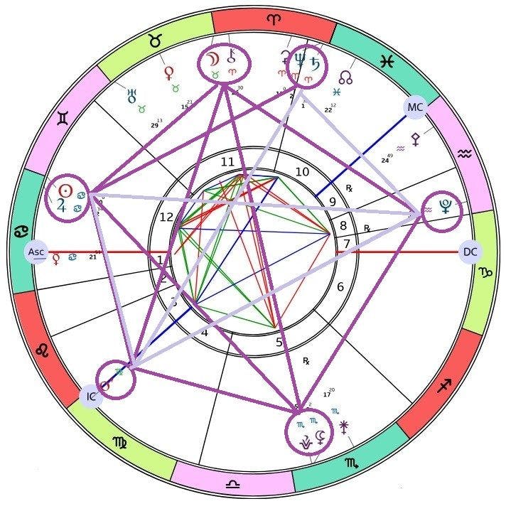 Perääntyvän Pluton kvinkunssit Aurinkoon, Jupiteriin sekä Marsiin muodostavat Jod suurkuvion. Toinen Jod kuvio muodostuu Pluton, Neptunuksen, Saturnuksen ja Marsin välille. Tämä on transformatiivinen ydin, jossa kohtalo, voima ja pakko kohtaavat. Kyse on sisäisestä puhdistumisesta ja uudelleenvaltuutuksesta. Toinen purkupiste siis on Mars, joka edustaa tahtoa, toimintaa ja fyysistä energiaa. Marsin kautta purkautuu rakenteellinen paine (Saturnus), illuusioiden hajoaminen (Neptunus) ja Pluton synkkä mutta vapauttava voima. Toimi, mutta tiedosta motiivisi. Rakenna uusi sisäinen kartta – Jupiter ja Neptunus ohjaavat suurempaan näkemykseen. Tämä on korkean tason karmallinen kuvio: sinua ohjataan uudelleenorientoitumaan syvimpien arvojesi ja tarkoituksesi mukaisesti. Tätä voi kuvata "sielun uudelleenkalibroinniksi". Voit tulla tietoiseksi vanhasta karmallisesta mallista, jota on nyt mahdollista purkaa – mutta se vaatii rohkeutta kohdata haavoittuvat, pelottavat tai hämärät kohdat itsessäsi.