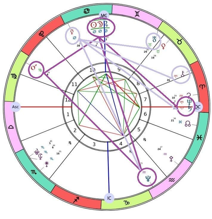 Kesäpäivänseisauksen aspektit jäävät elämään Uudenkuun kartalle. Saturnuksen ja Neptunuksen neliöt Uudenkuun stelliumiin luovat syvästi haastavan mutta kehitystä vaativan kuvion, jossa realiteetti toiveet ottavat toisistaan mittaa. Saturnus kysyy: "Oletko valmis sitoutumaan? Rakennatko kestävälle pohjalle?" Jos rakennat uuden alun vastuullisella otteella, saat siitä vahvan ja kestävän rakenteen. Neptunus sekoittaa rajoja: "Mikä on totta ja mikä toiveajattelua?" Saturnuksen ja Neptunuksen neliöt Uudenkuun stelliumiin ovat kuin sisäinen alkemiallinen testi: pystytkö kuvittelemaan rohkeasti, mutta rakentamaan realistisesti? On tärkeää palata perusarvoihin: mitä sydämeni kaipaa? Mikä on minulle totta? Tämä on hetki istuttaa siemen sille, mikä ravitsee, tukee ja kantaa sinua hellästi läpi elämän seuraavan syklin.