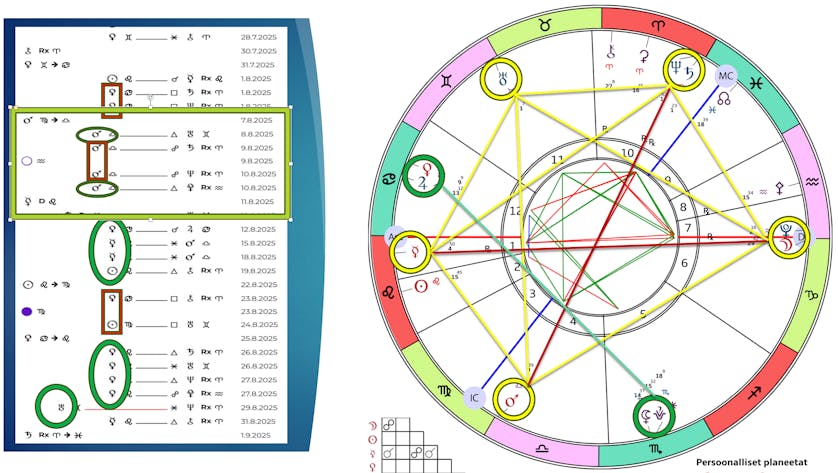 -Haluat nähdä,milloin tietyt teemat aktivoituvat elämässäsi, kuten ihmissuhteet, työ tai oma henkinen kasvu