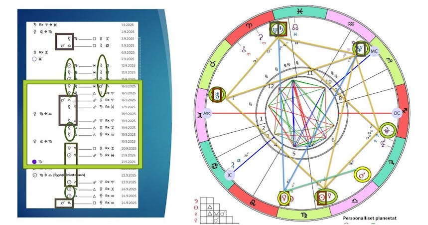 -Haluat nähdä,milloin tietyt teemat aktivoituvat elämässäsi, kuten ihmissuhteet, työ tai oma henkinen kasvu
