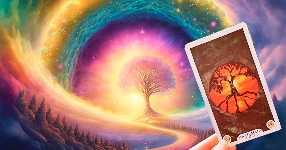 Tämä Kalevalainen tarot Maailma Puu kortti kuvastaa omaa matkaani oivallukseen, jonkin asteiseen perille pääsemiseen itseeni. Elämäni mysteerin jonkin asteiseen ratkeamiseen ja eheytymiseen.