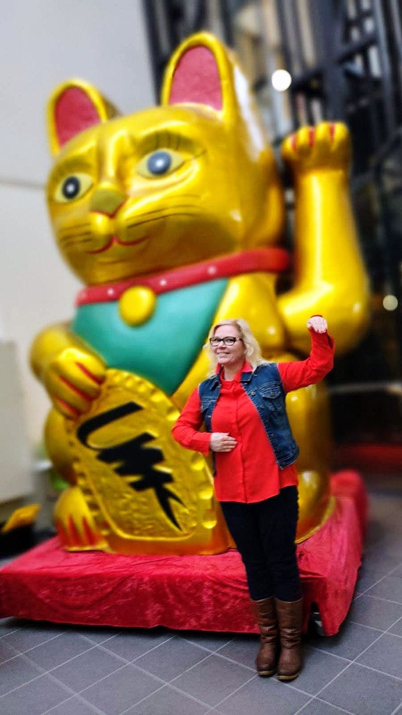 Ruokakin voi muuten olla punaista, kuten höyryävän kuumassa tomaattikeitossa, uunipaprikoissa – tai runebergintorttujen hillossa! Keinoja on monia, kun käyttää mielikuvitusta. Itse löydän kylmän helmikuun keskellä iloa Ystävänpäivästä, joka kutsuu meitä yhteen ja lämmittää sydäntä. Ja iloa toi elämääni myös tämä sattumalta kohtaamani onnenkissa, suurin ja kaunein koskaan näkemäni. Tuokoon se roppakaupalla onnea kaikille, jotka sen livenä bongaavat, ja näiden kuvaterveisten välityksellä suoraan sinullekin.